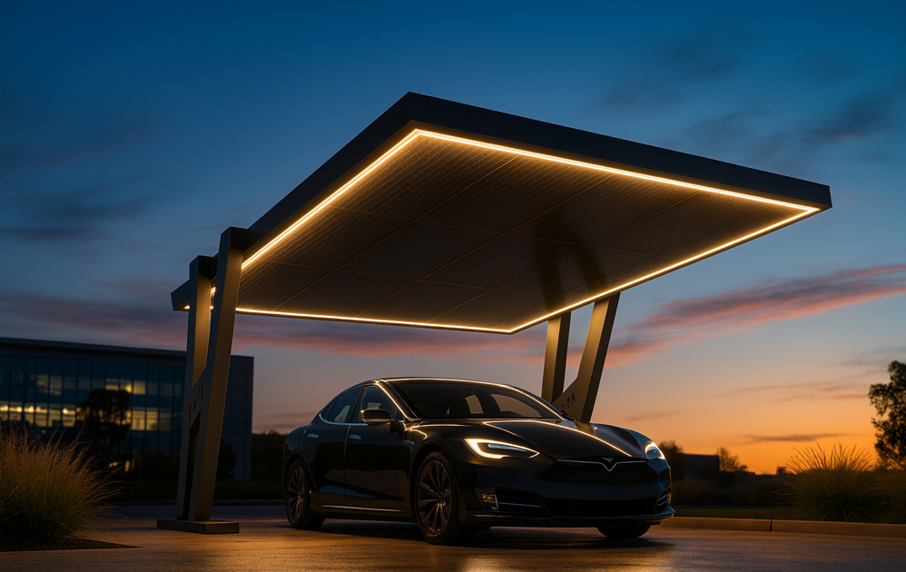 當傳統車棚還僅僅是一個“遮蔽所”時,我們的太陽能車棚已進化成一個集發電、充電、 環保、美學于一體的智能綠色終端。